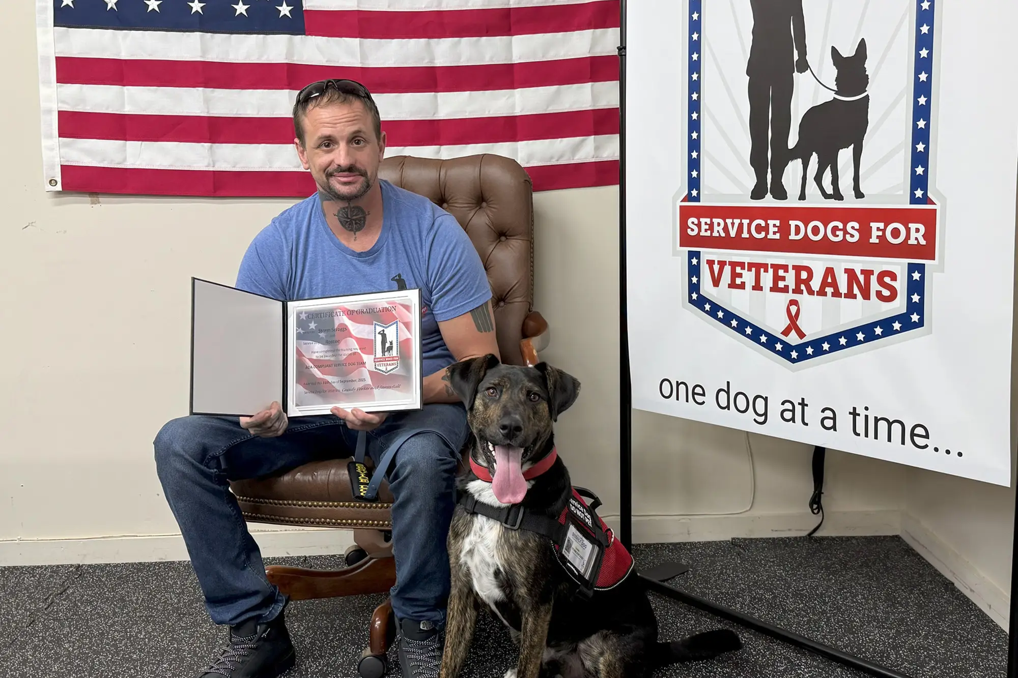 SD4V provides a unique training program for Veterans to train their own Service Dog, to help them cope with the pain of loss, the nightmare of memory, and the loneliness of survival.